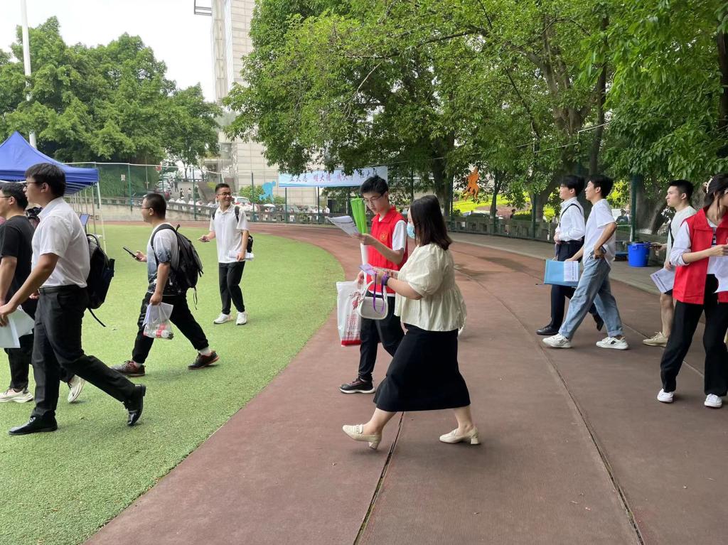 团结广场入口处的志愿者们耐心引导用人单位代表签到登记、参会员工刷卡进场,现场人员进出井然有序;场内志愿者热情协助用人单位进行布展宣传,并依照相关规定对宣传物料进行辅助检查;志愿者服务点则随时供应饮用水与纸、笔等各类文具,并由志愿者向前来咨询的人员提供指引与帮助。烈日炎炎,志愿者们在老师和各小组长的调度下有序轮岗,无论在何种岗位开展工作,都一丝不苟、精神饱满。参与本次双选会的用人单位代表和师生纷纷表示,志愿者们服务贴心、热情周到,展现出了重大学子的良好素质和积极面貌,体现了员工党员乐于奉献的模范带头作用。