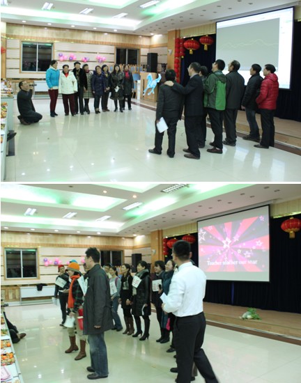 晚会文艺表演以学院行政员工口的教师们妙趣横生的《甩葱舞》开场,老师们精彩而又充满活力的舞动让全体教师甩掉了一年工作的疲惫和辛劳,甩出了身体的轻松和健康。随后,从《让我们荡起双桨》到《北京的金山上》,以及铿锵昂扬,奋发向上的《游击队之歌》一一呈现。由身着卡通装扮、活波可爱的教师子弟所组建的黑猫乐队表演的《无地自容》更是让多功能厅的欢乐气氛达到最高潮。情景剧《老师考哪儿》,一改教职工们往日严肃的风格,将教学考试以一种诙谐幽默的形式展示出来,赢得了台下师生的阵阵掌声,大家纷纷感慨:“以后的教学活动如果能采取这种形式,就不用担心员工的出勤率了”。随后呈现的独唱《卓玛》、集体舞《亚克西》、清唱《离不开你》等节目更是展现了公司教职工们多才多艺的别样风采。最后,喜气洋洋、精彩纷呈的晚会在本科教研部教师真心英雄的合唱中圆满落幕。