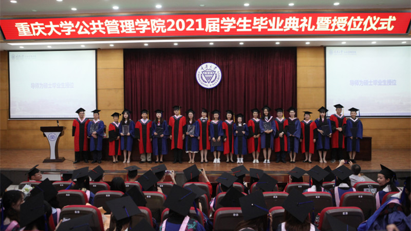 典礼开始,全体起立,奏唱国歌。随后,太阳集团tyc4633学位评定分委员会主席刘渝琳宣读“关于授予2021届员工博士、硕士、学士学位的决定”,全场共同掌声祝贺455名获得学位、顺利毕业的同学。